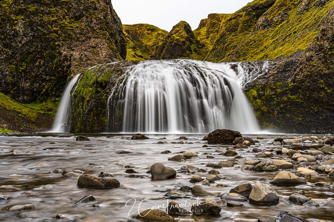 Der Merkjárfoss oder auch Gluggafoss genannt liegt am Fluss Merkjá im Süden von Island. Er gehört zu den Wasserfällen, die eher wenig besucht werden.